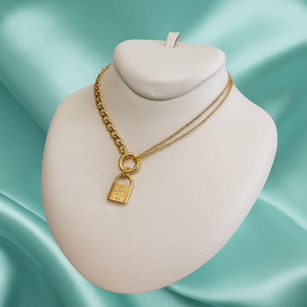 “طلای ناب در آغوش مرواریدهای درخشان… گردنبندی که به گردنت، داستانی از لطافت و شکوه میبافد.”