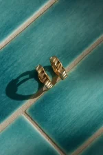 “سادگی‌ای که هیچ‌وقت از مد نمی‌افته… این گوشواره‌های طلایی دایره‌ای، نماد ظرافت و وقارن ✨💛